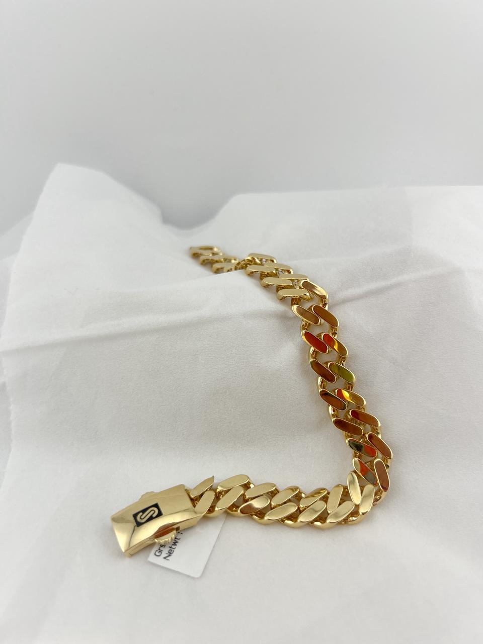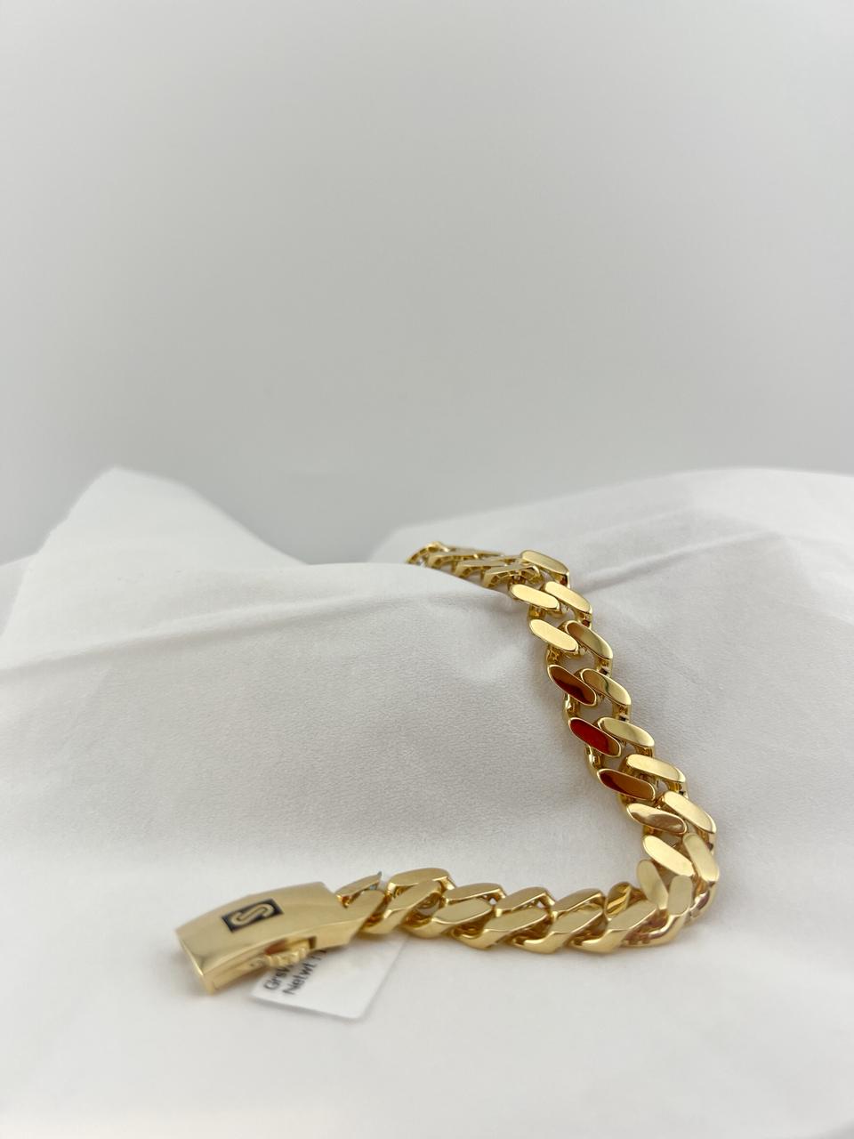 Elevate your everyday elegance with this exquisite 18K gold bracelet, crafted to perfection for those who appreciate timeless luxury. With its smooth finish and refined design, this piece adds a touch of sophistication to any look — whether worn alone or stacked with your favourite accessories.