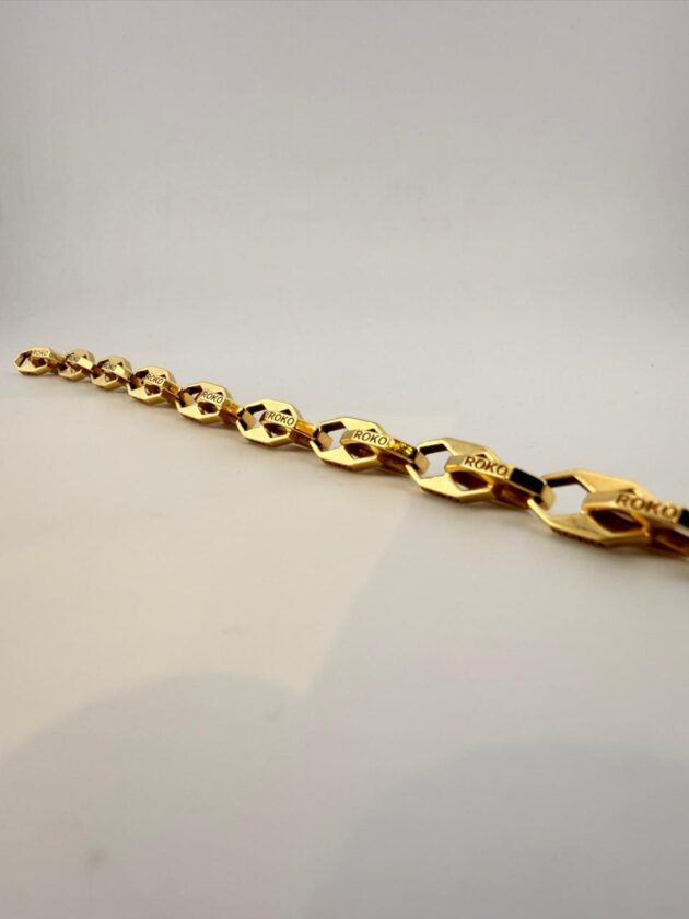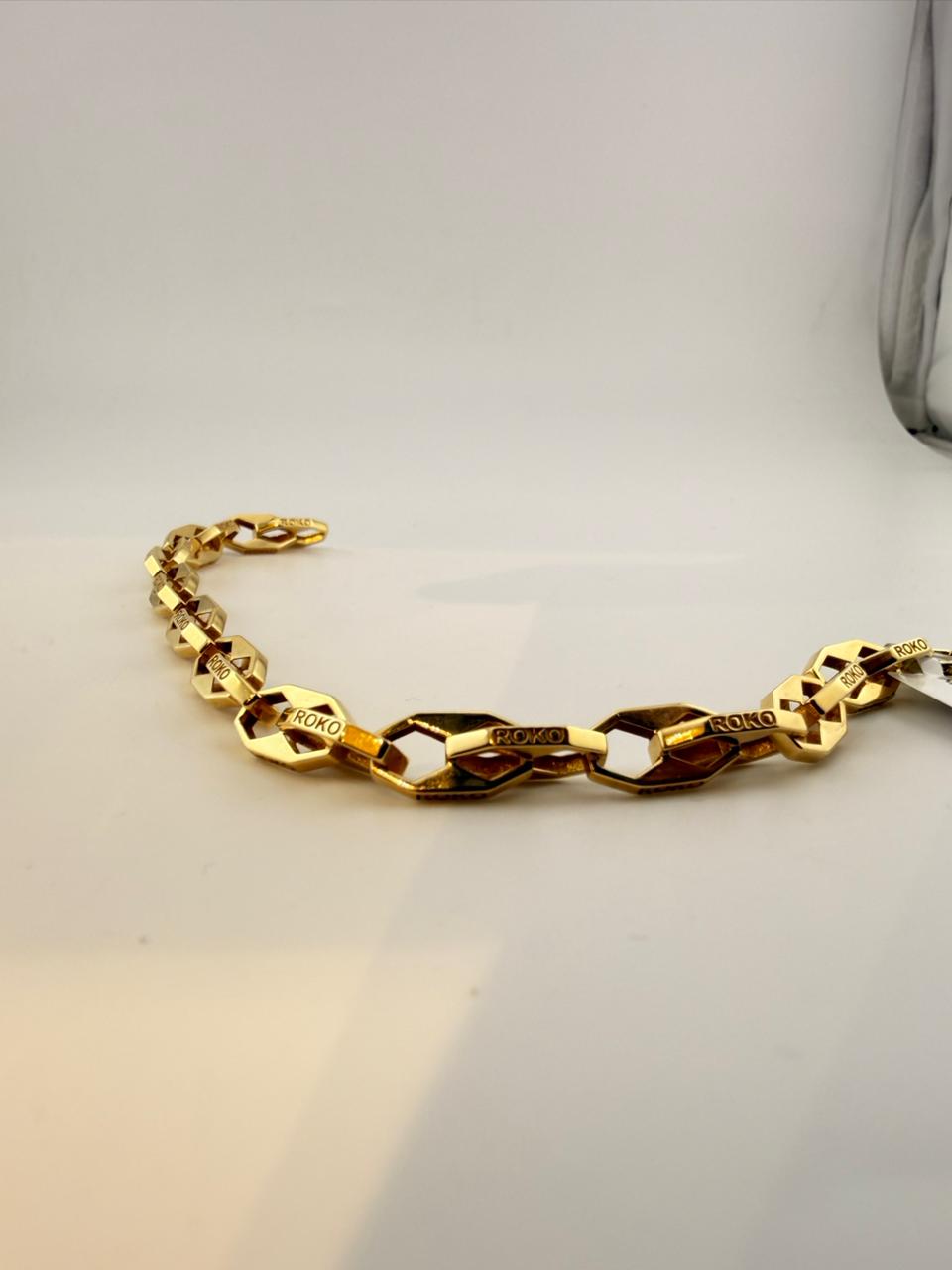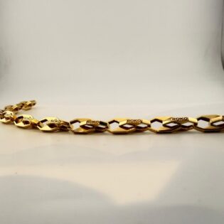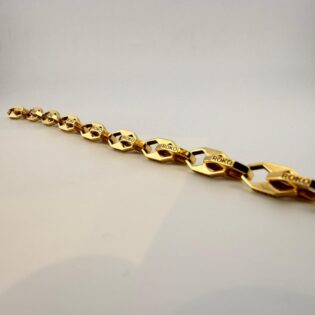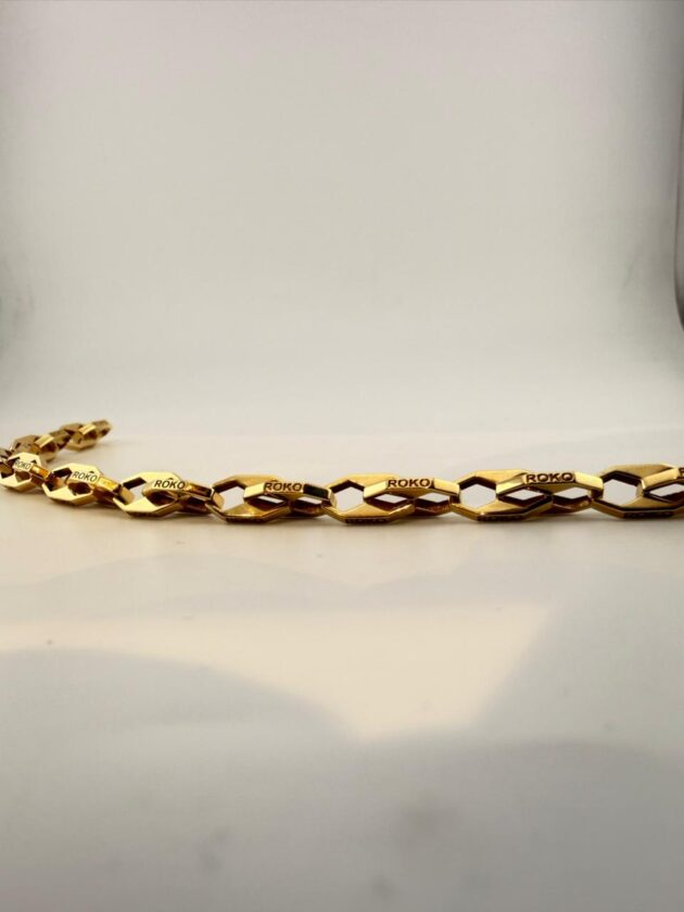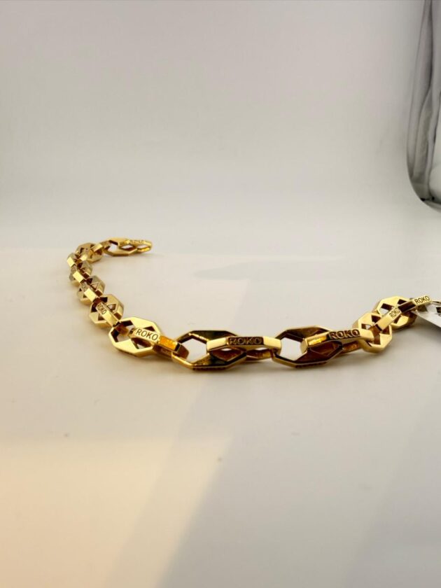 Elevate your everyday elegance with this exquisite 18K gold bracelet, crafted to perfection for those who appreciate timeless luxury. With its smooth finish and refined design, this piece adds a touch of sophistication to any look — whether worn alone or stacked with your favourite accessories.