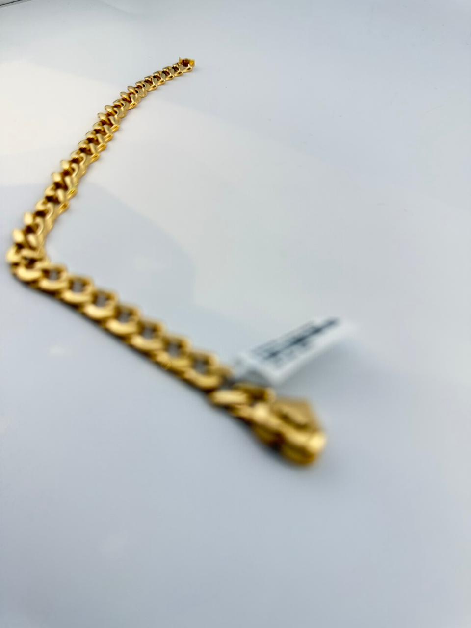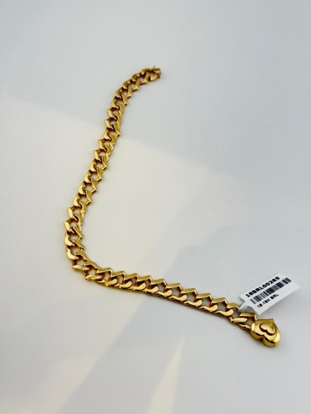 Elevate your everyday elegance with this exquisite 18K gold bracelet, crafted to perfection for those who appreciate timeless luxury. With its smooth finish and refined design, this piece adds a touch of sophistication to any look — whether worn alone or stacked with your favourite accessories.
