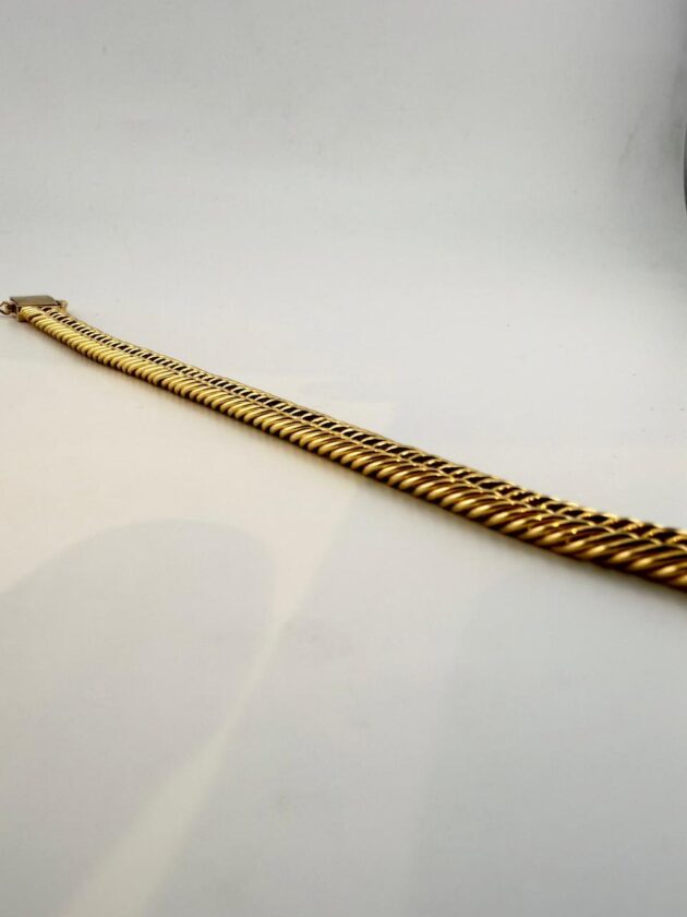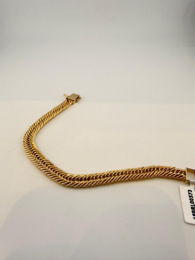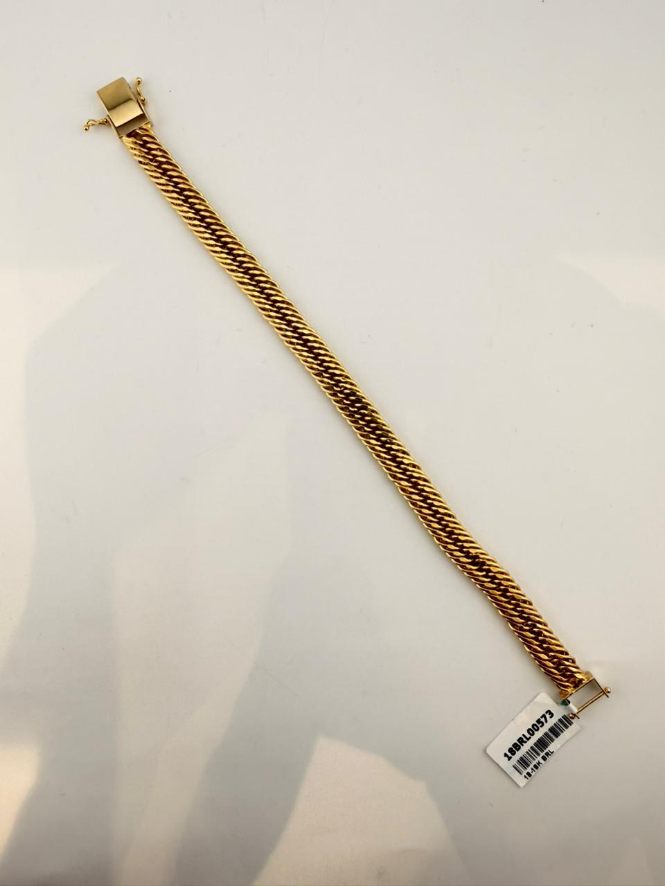 Elevate your everyday elegance with this exquisite 18K gold bracelet, crafted to perfection for those who appreciate timeless luxury. With its smooth finish and refined design, this piece adds a touch of sophistication to any look — whether worn alone or stacked with your favourite accessories.