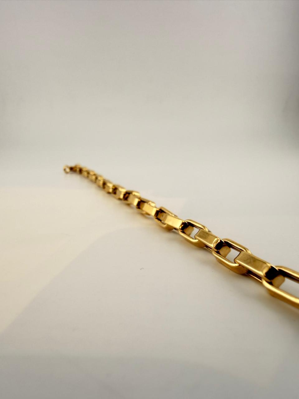 Elevate your everyday elegance with this exquisite 18K gold bracelet, crafted to perfection for those who appreciate timeless luxury. With its smooth finish and refined design, this piece adds a touch of sophistication to any look — whether worn alone or stacked with your favourite accessories.