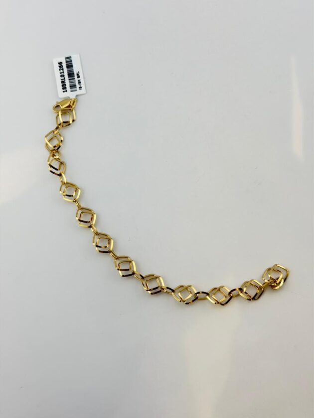 Elevate your everyday elegance with this exquisite 18K gold bracelet, crafted to perfection for those who appreciate timeless luxury. With its smooth finish and refined design, this piece adds a touch of sophistication to any look — whether worn alone or stacked with your favourite accessories.