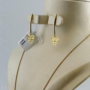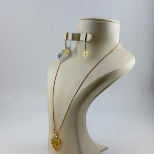 This elegant 18K gold set includes a sleek chain, refined pendant, and classic stud earrings, crafted in 75% pure gold with a polished finish. Total weight: 3.78 grams (chain ~1.42g, pendant ~1.060g, studs ~1.30g). Perfect for daily wear or gifting.