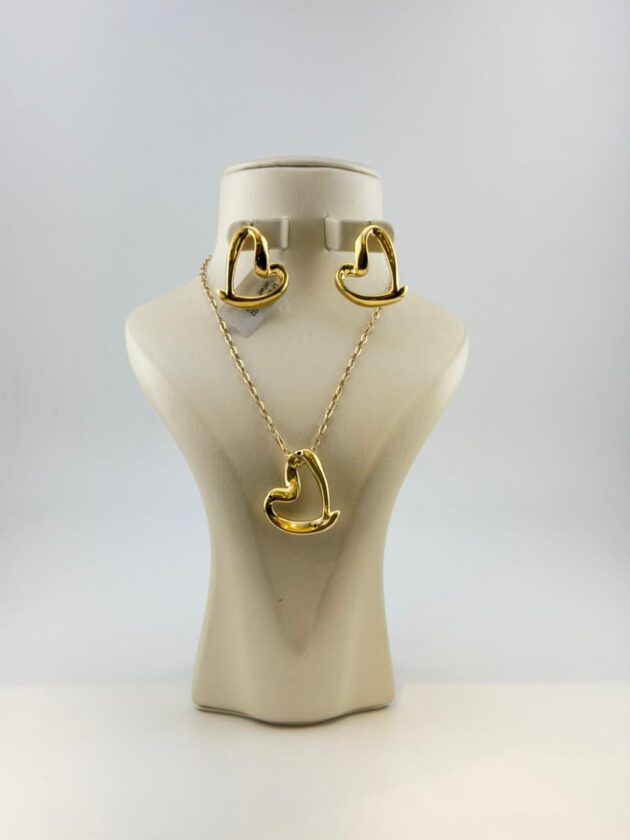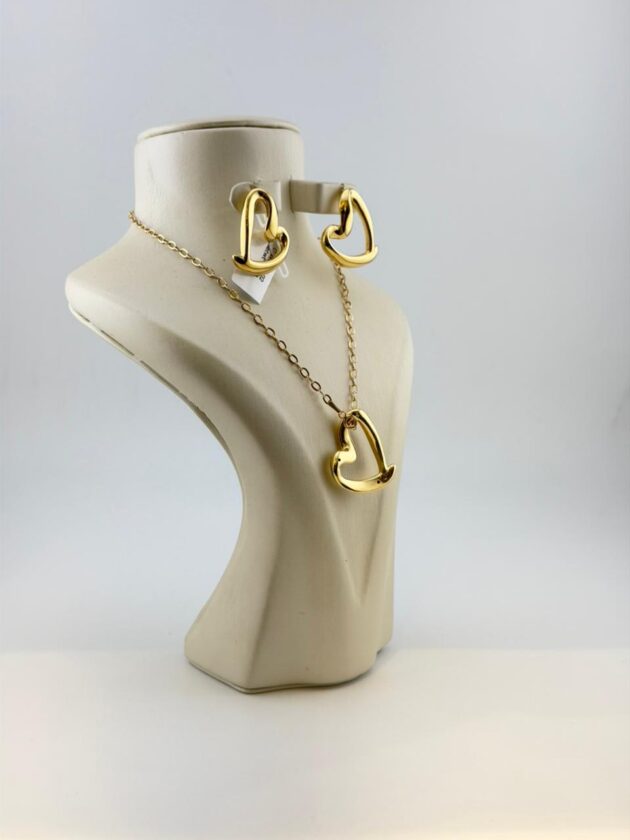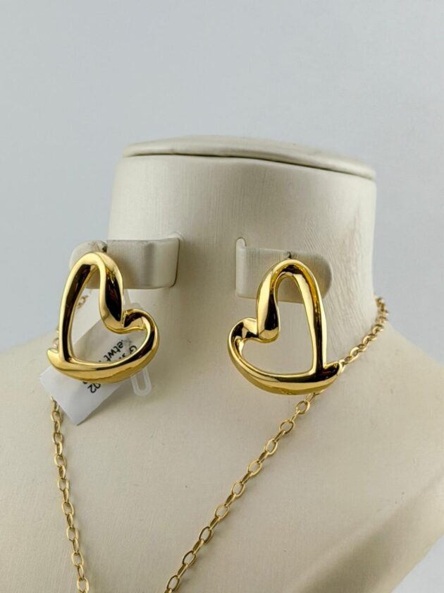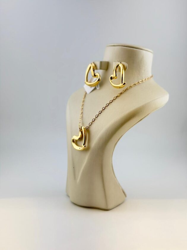 This elegant 18K gold set includes a sleek chain, refined pendant, and classic stud earrings, crafted in 75% pure gold with a polished finish. Total weight: 4.03 grams (chain ~1.27g, pendant ~0.740g, studs ~2.02g). Perfect for daily wear or gifting.