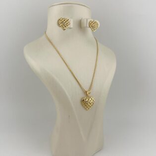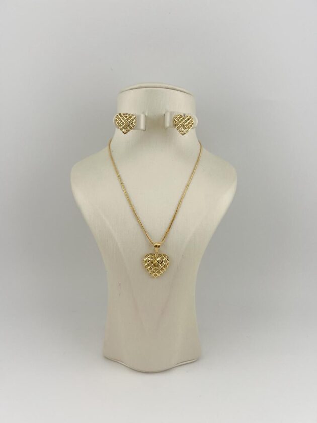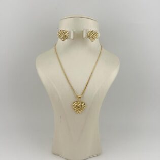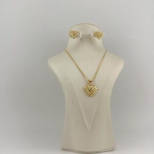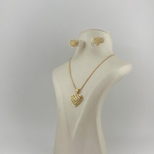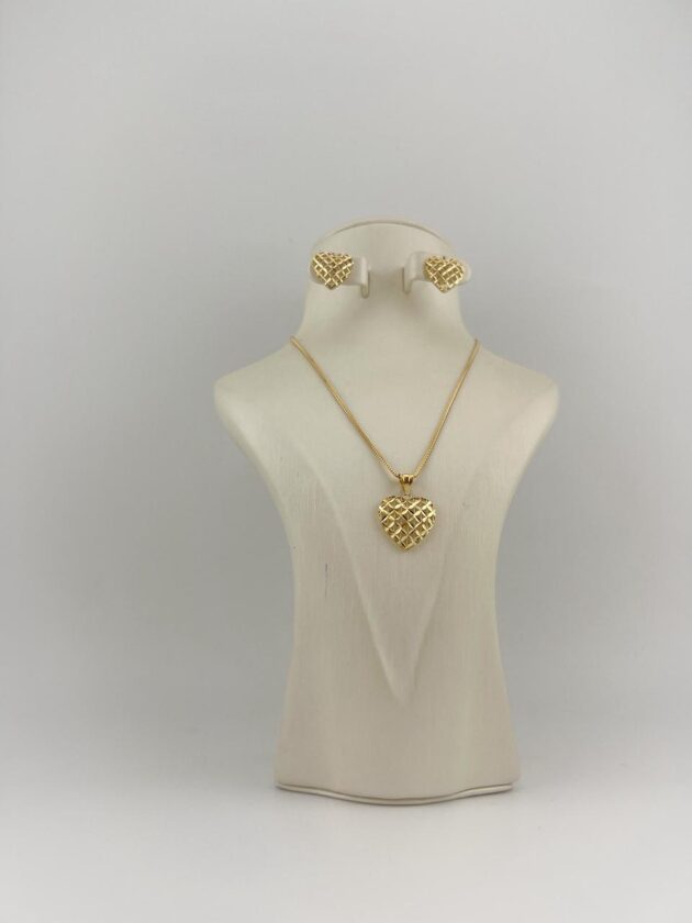 The set includes a sleek gold chain, a delicate pendant, and matching stud earrings — a perfect blend of sophistication and everyday luxury.