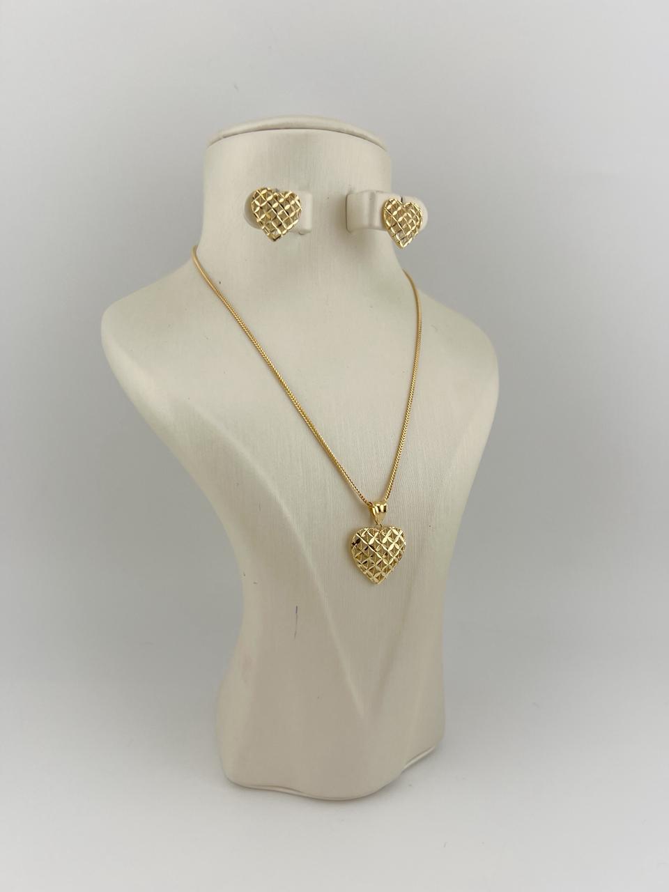 The set includes a sleek gold chain, a delicate pendant, and matching stud earrings — a perfect blend of sophistication and everyday luxury.