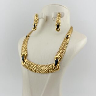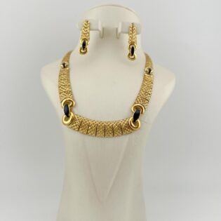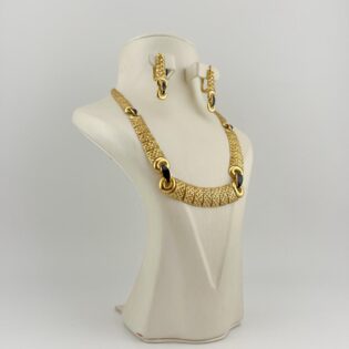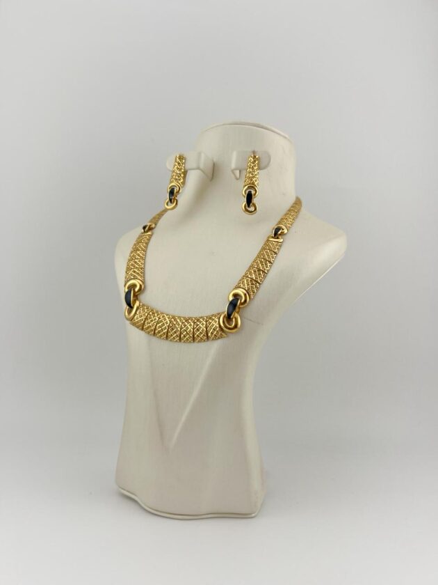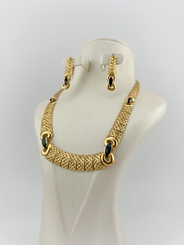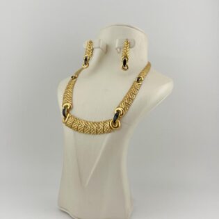 Elevate your elegance with this exquisite 18K gold necklace and earrings, masterfully designed to blend timeless beauty with modern sophistication.