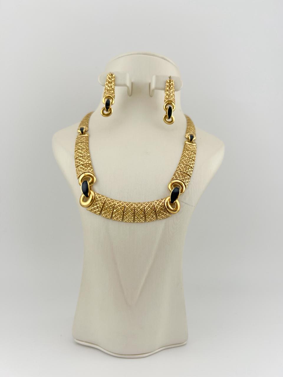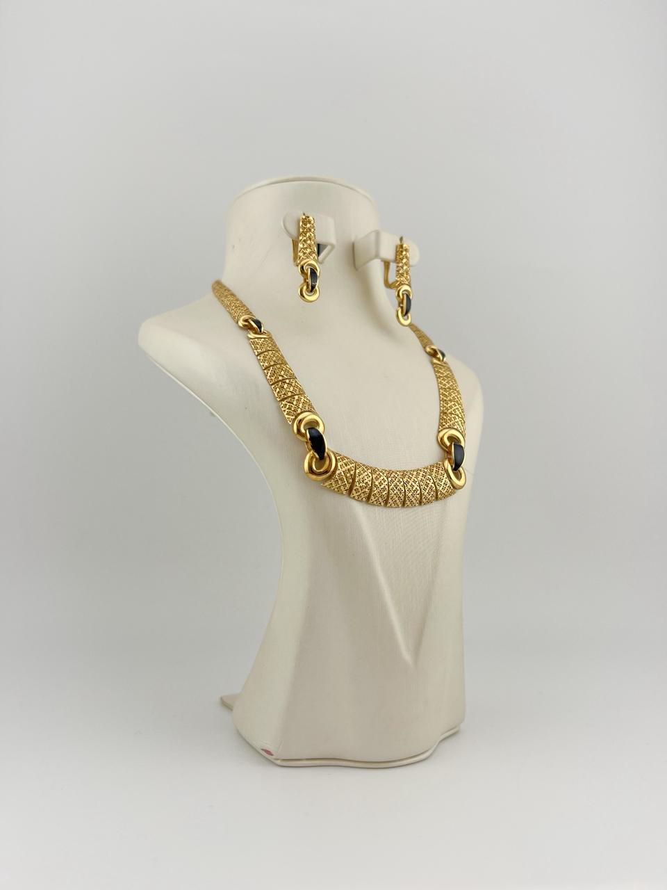 Elevate your elegance with this exquisite 18K gold necklace and earrings, masterfully designed to blend timeless beauty with modern sophistication.